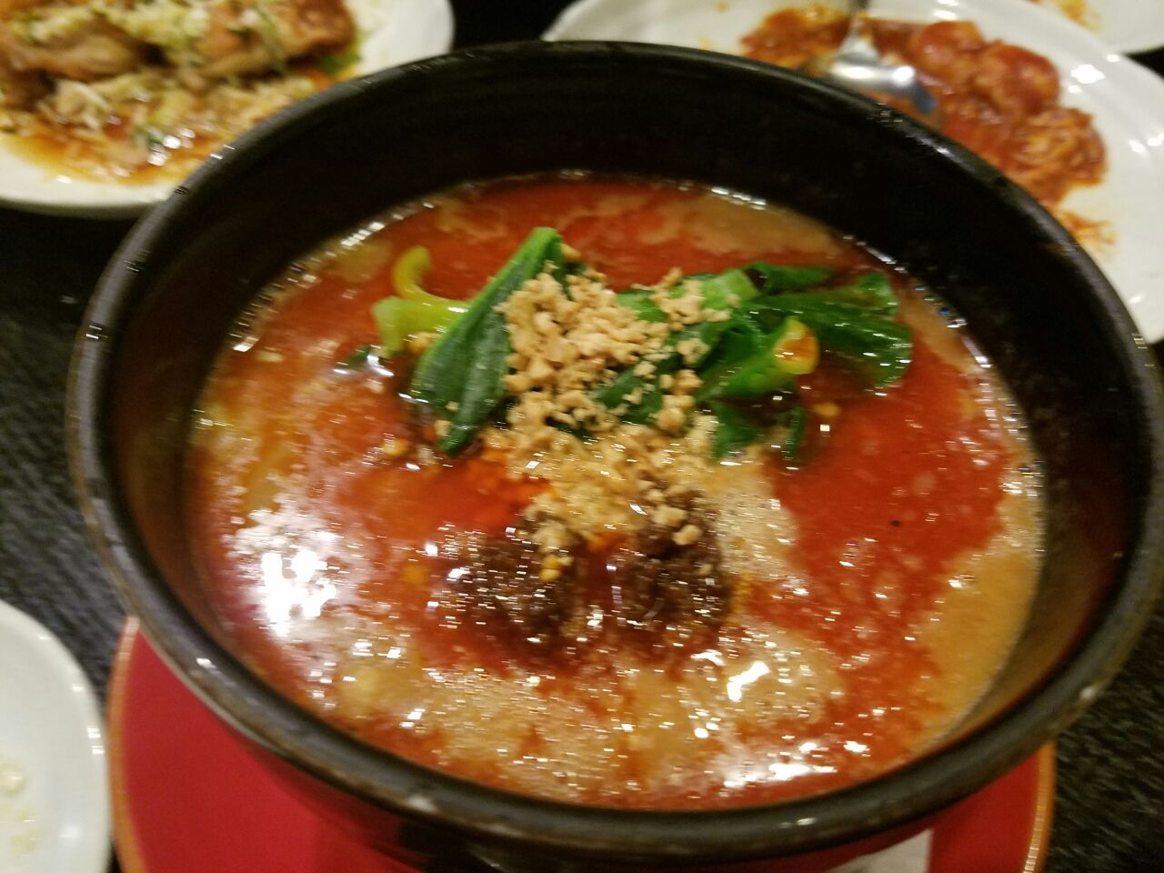 ゴマペーストがしっかり効いた、きっと初めて担々麺を食べた時にあまりの美味しさに感動したことを思い出す味で、麺はかための縮れ麺で、ゴマがたっぷり効いたスープに馴染んで美味しいものです。