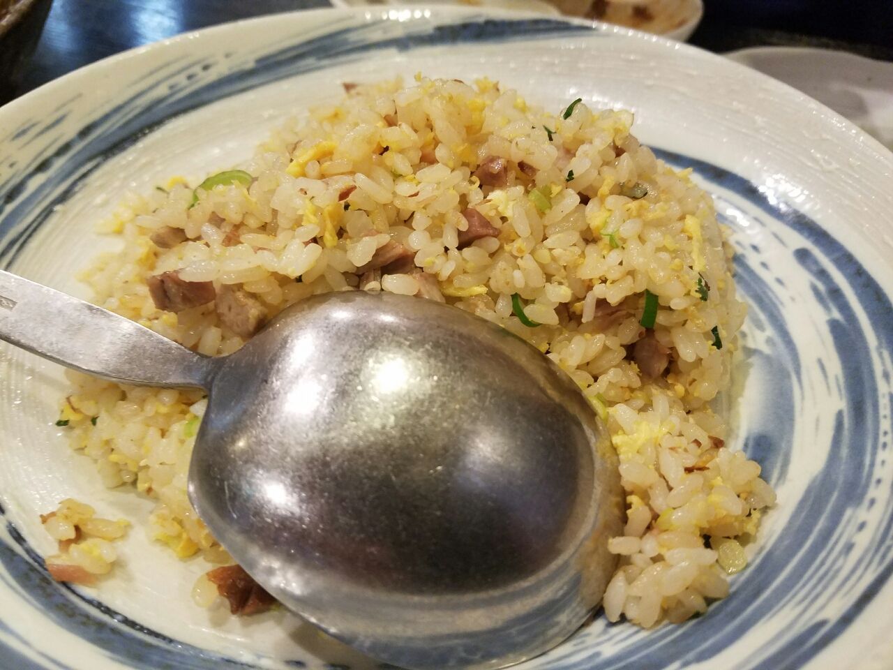 叉焼炒飯も頼みました。これも美味しく、麻婆豆腐をかけながら食べると格別の味わいです。